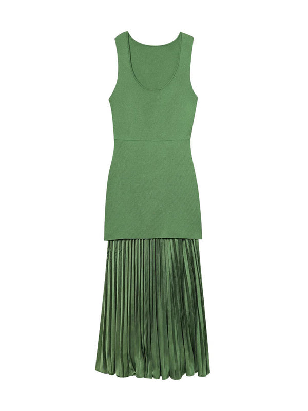 Momyknows Geen Pleated Tank Patchwork Elegant Maternity Maxi Dress