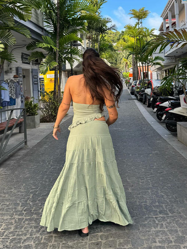 Momyknows Green 2 Pieces Ruffle Vocation Maternity Maxi Dress