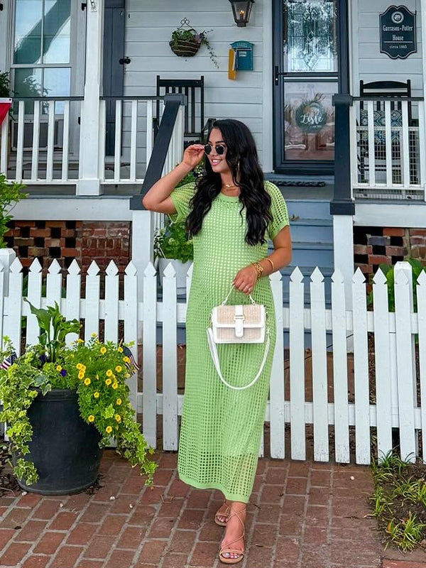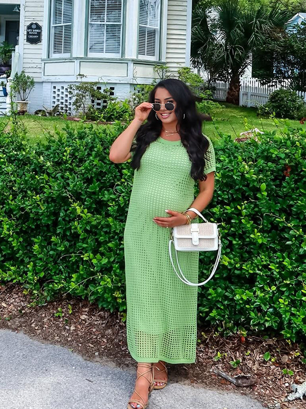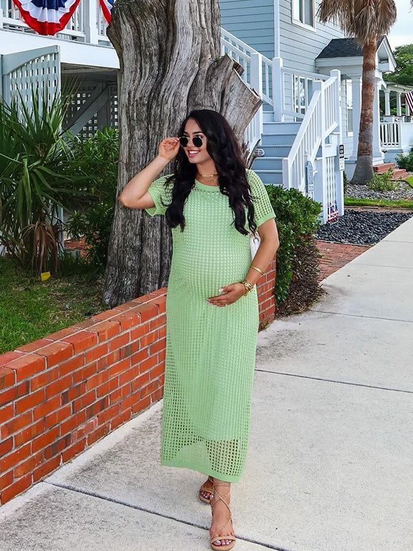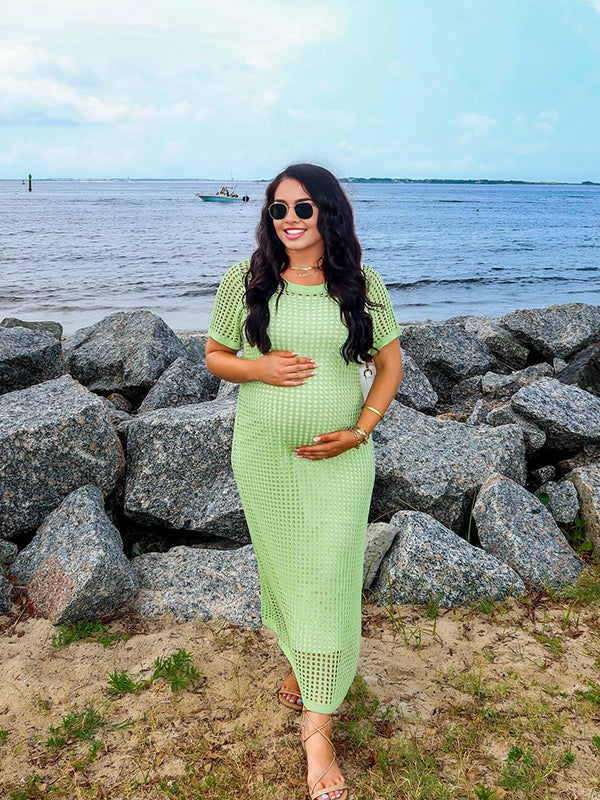 Momyknows Green Openwork Two Piece Maternity Photoshoot Maxi Dress