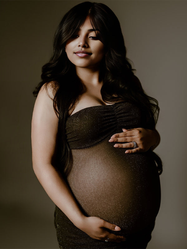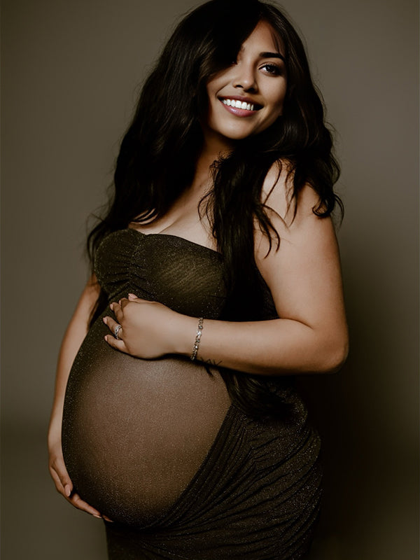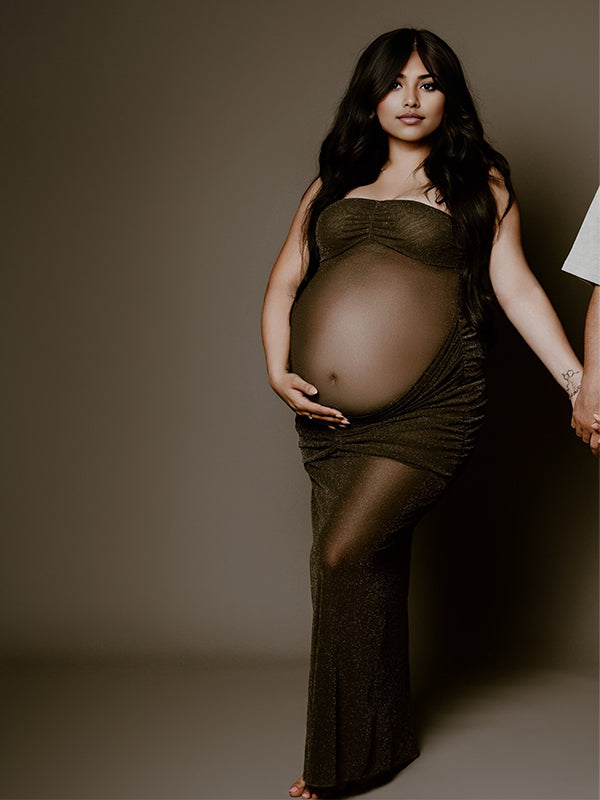 Momyknows Green Ruched Sheer Sparkly Photoshoot Maternity Maxi Dress