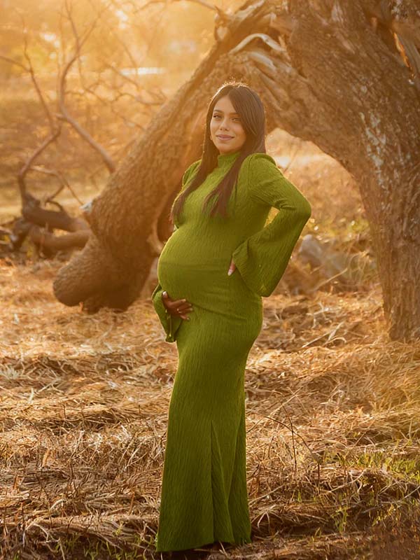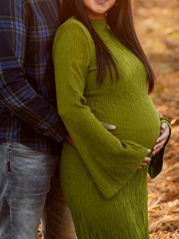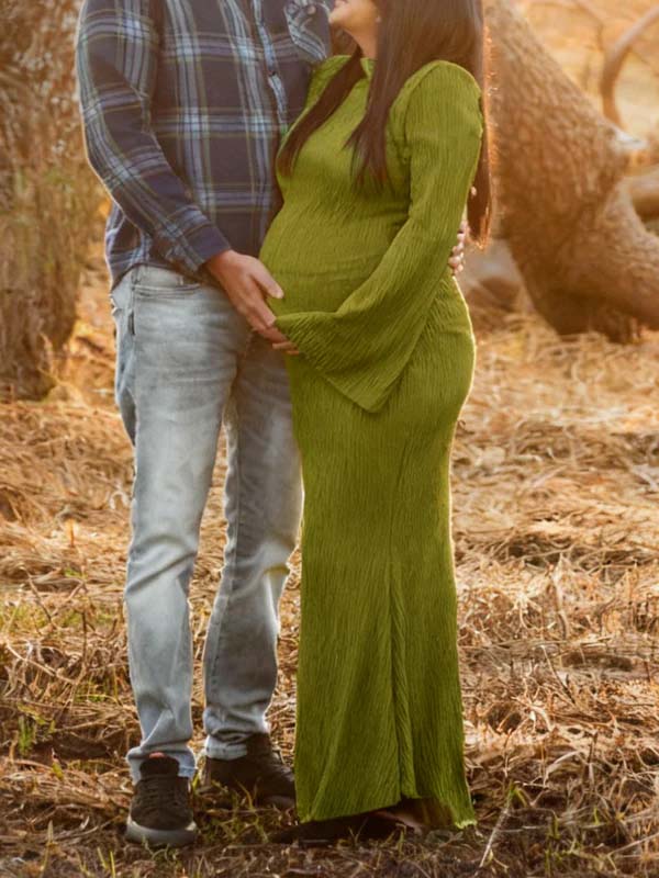 Momyknows Green Smocked Flare Sleeve Maternity Photoshoot Maxi Dress
