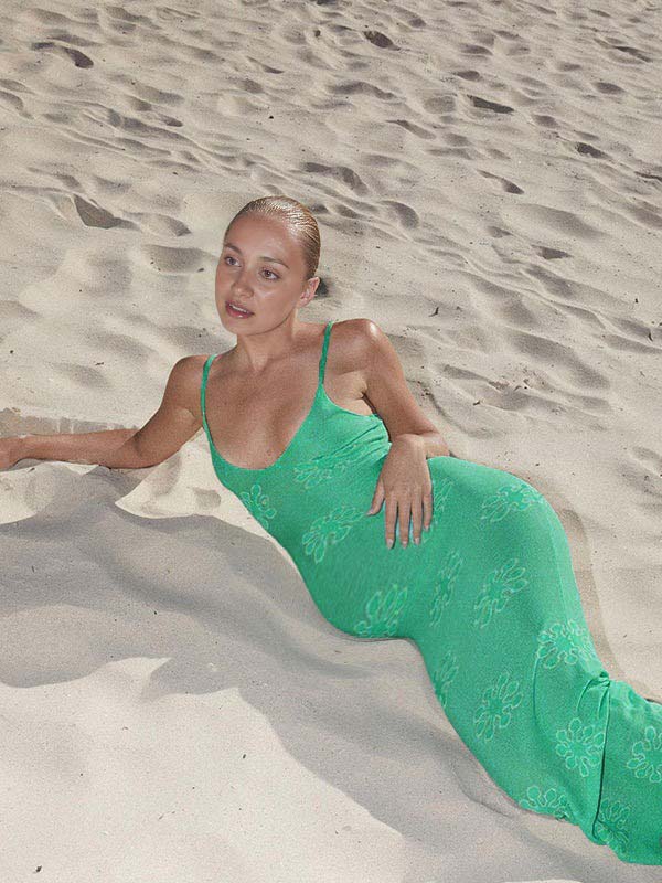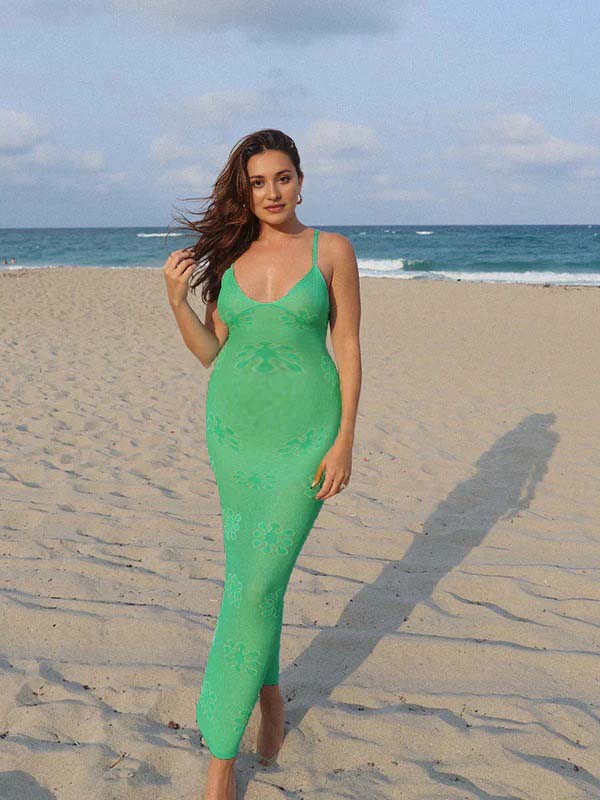 Momyknows Green Spaghetti Strap Tribal Vacation Beach Maternity Photoshoot Maxi Dress