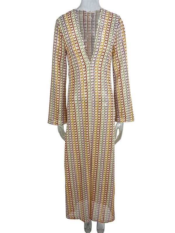 Momyknows Hollow Lace V-Neck Bodycon Flare Sleeve Hit Color Colorful Bodycon Vacation Gown Photoshoot Maternity Maxi Dress