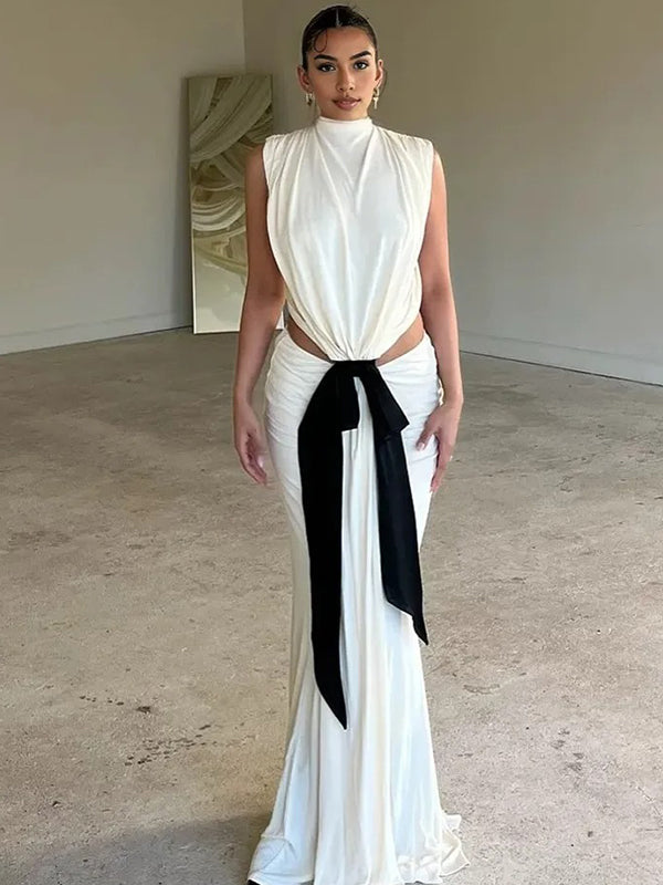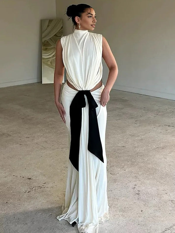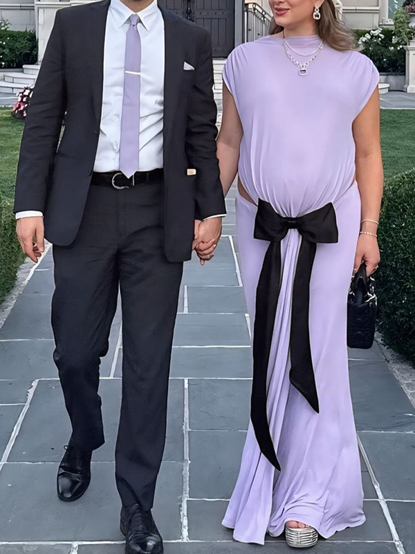 Momyknows Irregular Big Bow Cut Out Draped Backless Mermaid Maternity Maxi Dress