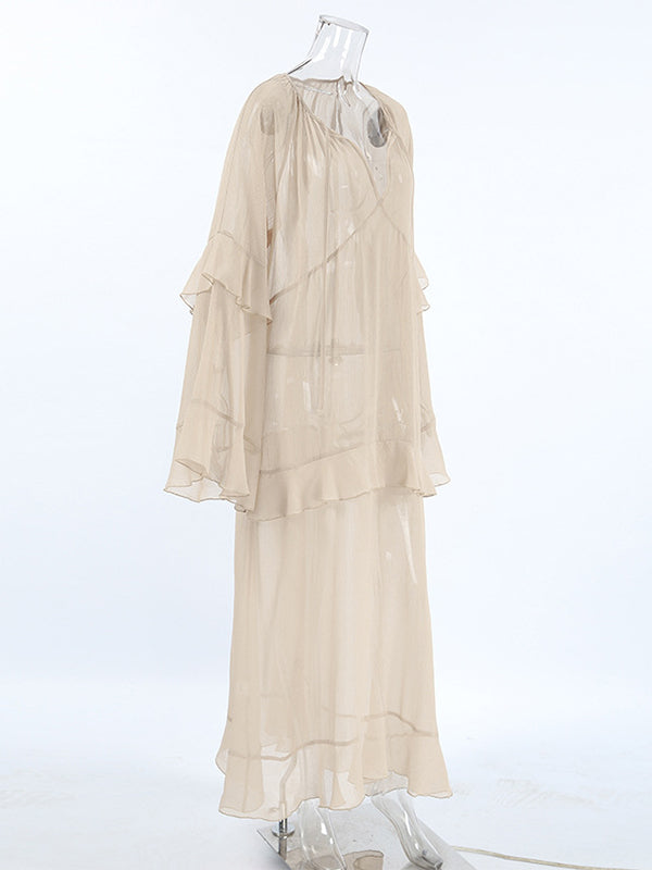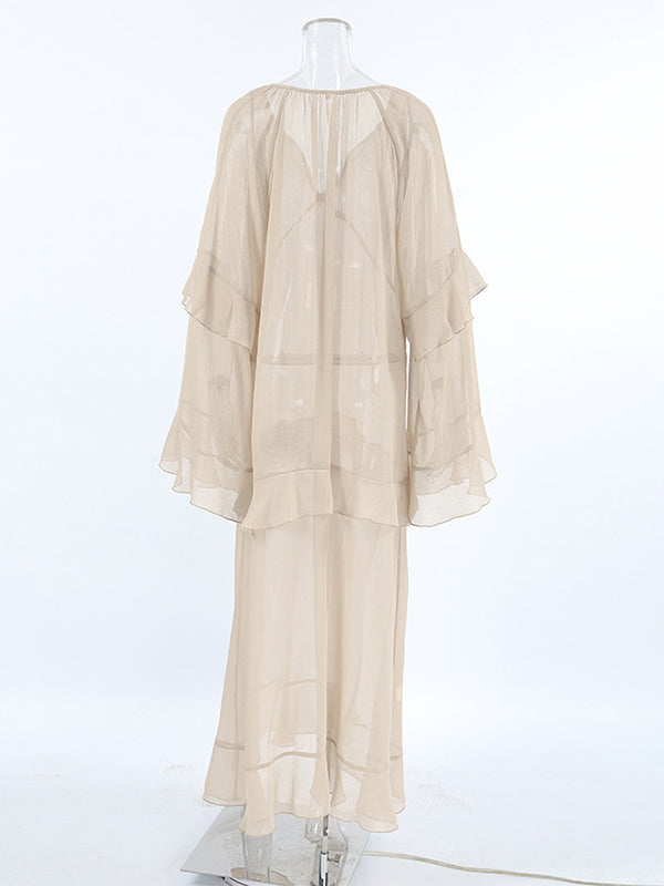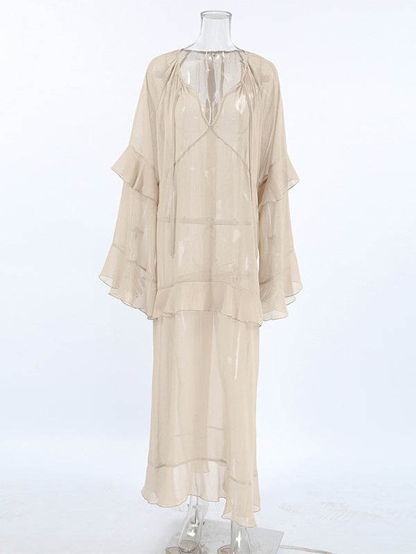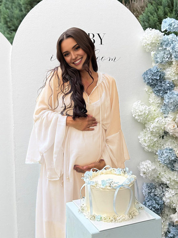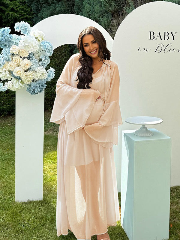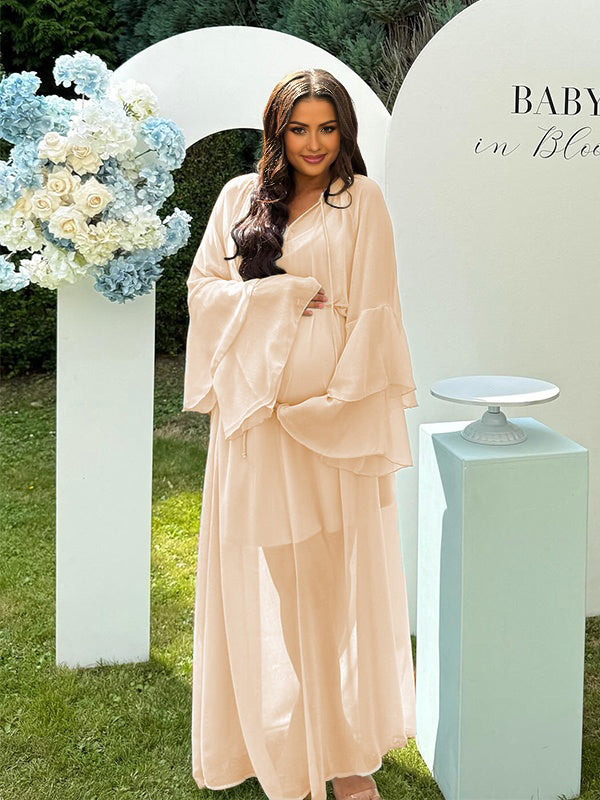 Momyknows Khaki Ruffle Sheer Flowy Batwing Sleeve Baby Shower Maternity Maxi Dress