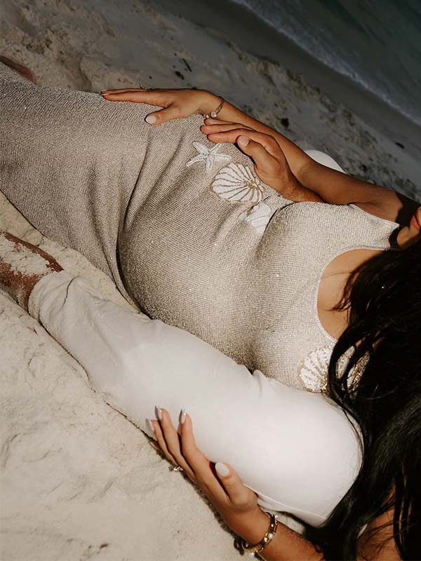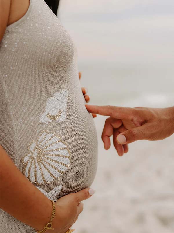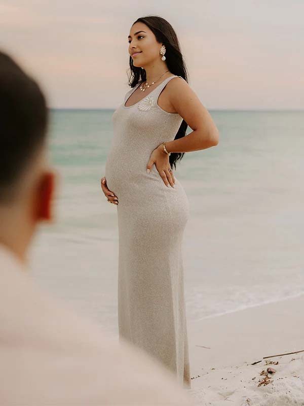 Momyknows Knit Shell Pearl Pattern Sparkly Photoshoot Maternity Maxi Dress