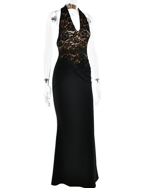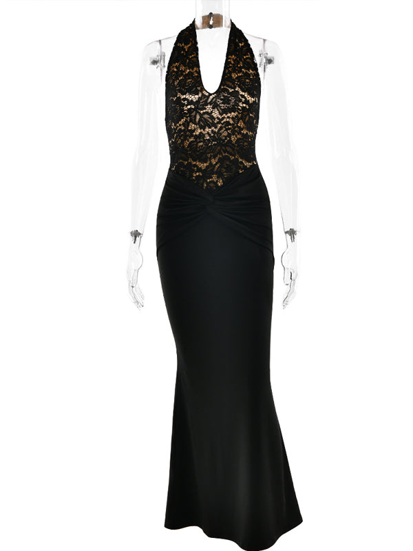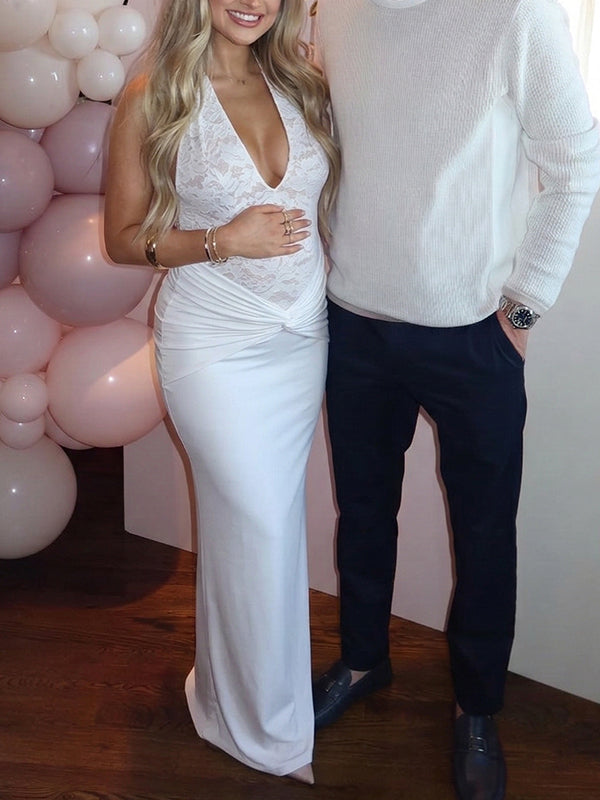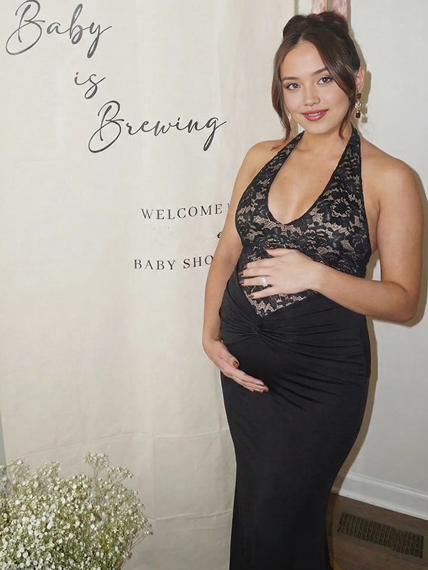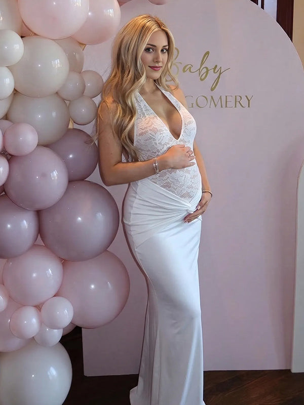 Momyknows Lace Patchwork Ruched Backless Bodycon Maternity Maxi Dress