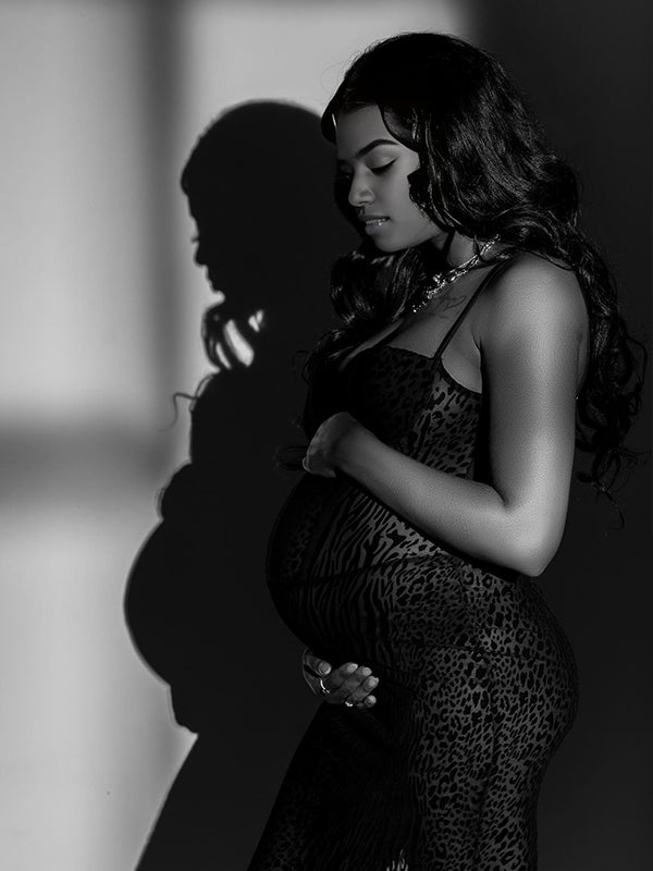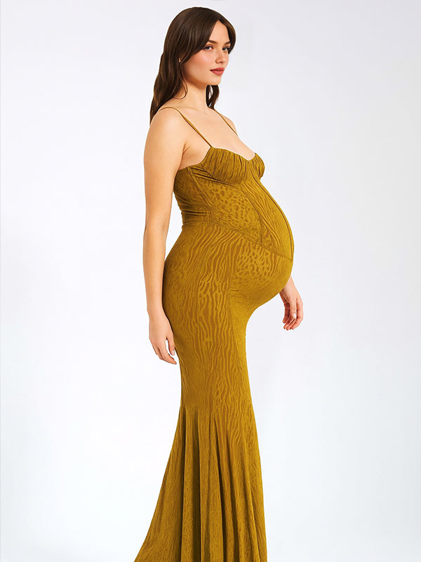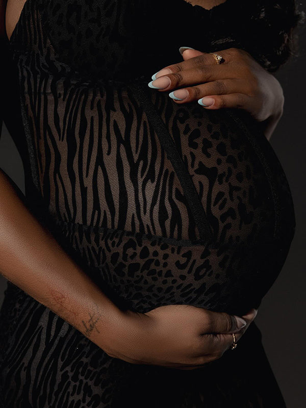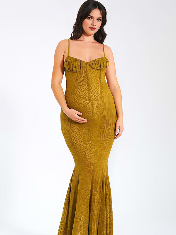 Momyknows Leopard Mesh Bodice Cami Mermaid Elegant Maternity Maxi Dress