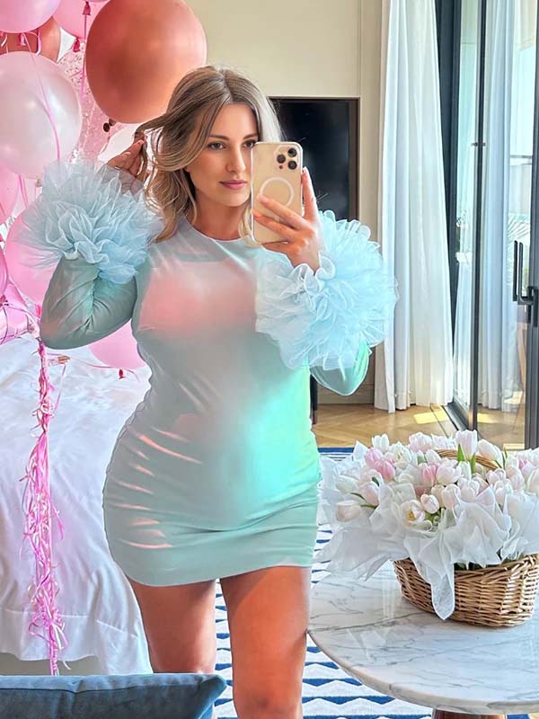 Momyknows Light Blue Fluffy Open Back Zipper Maternity Baby Shower Mini Dress