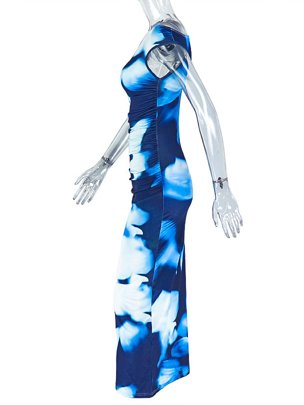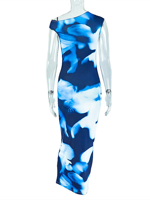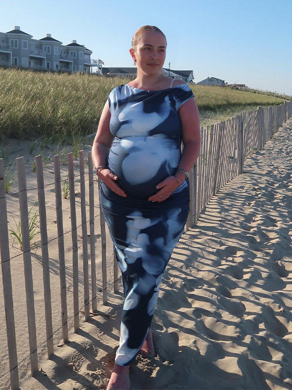 Momyknows Navy Blue One Shoulder Floral Photoshoot Maternity Maxi Dress
