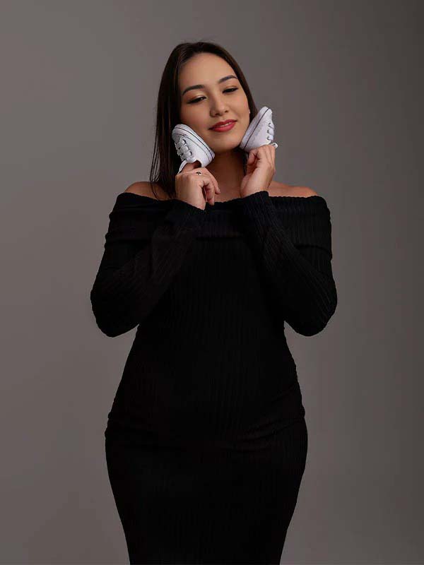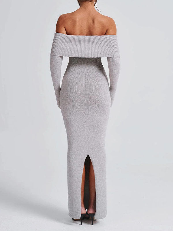 Momyknows Off Shoulder Back Slit Flare Sleeve Bodycon Elegant Photoshoot Maternity Maxi Sweater Dress