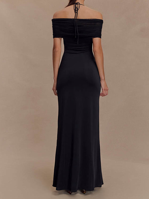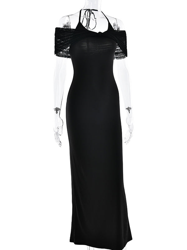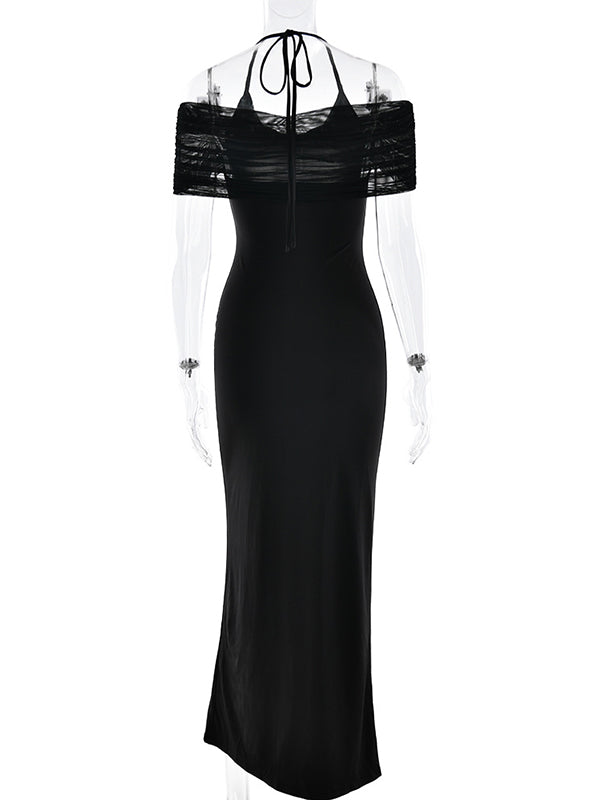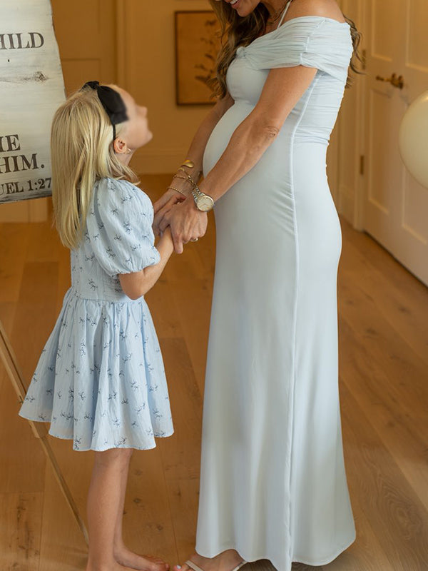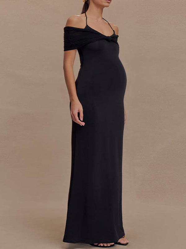 Momyknows Off Shoulder Mesh Ruched Knot Cami Maternity Maxi Dress