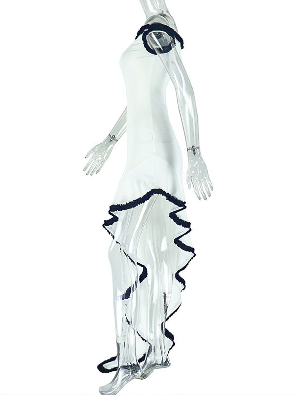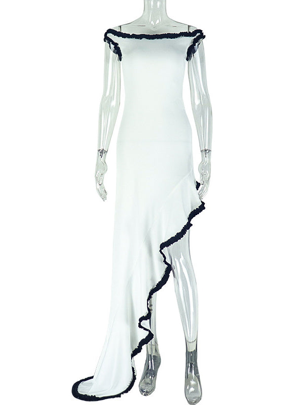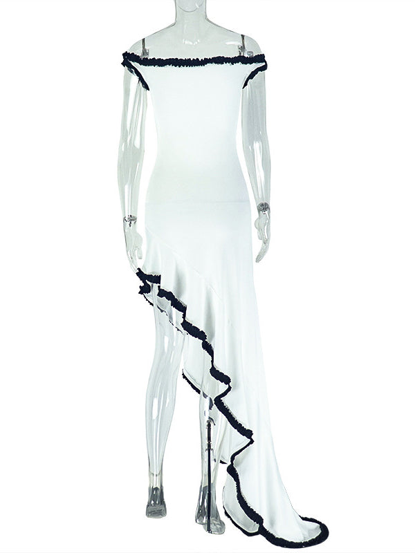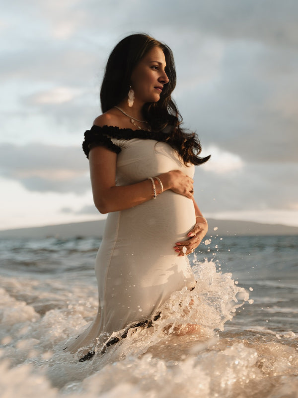 Momyknows Off Shoulder Ruffle Irregular Photoshoot Maternity Maxi Dress