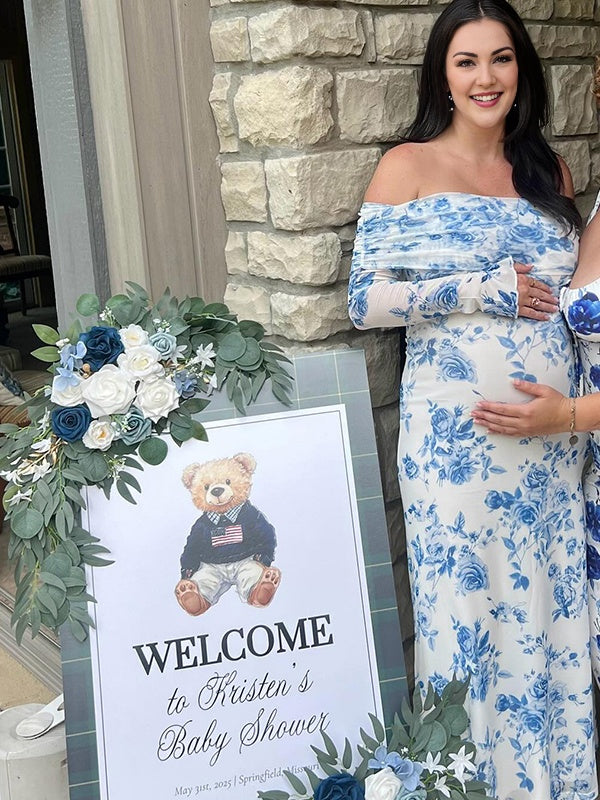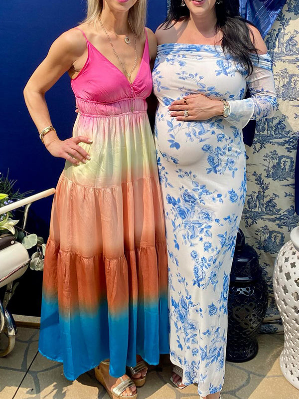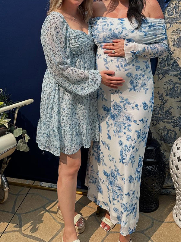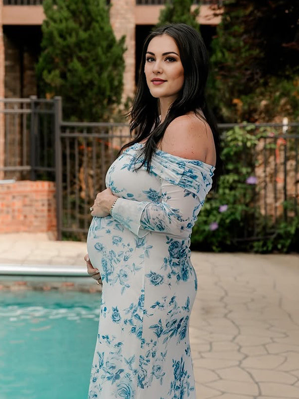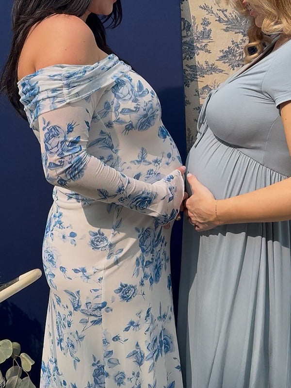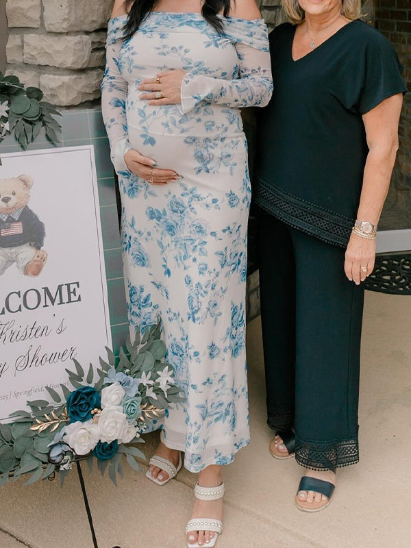 Momyknows Off Shoulder Stamp Duty Maternity Baby Shower Maxi Dress