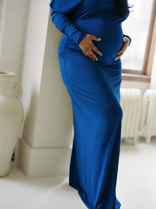 Momyknows One Shoulder Ruched Mermaid Maternity Maxi Dress