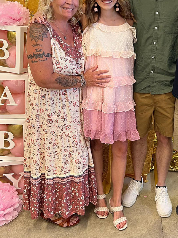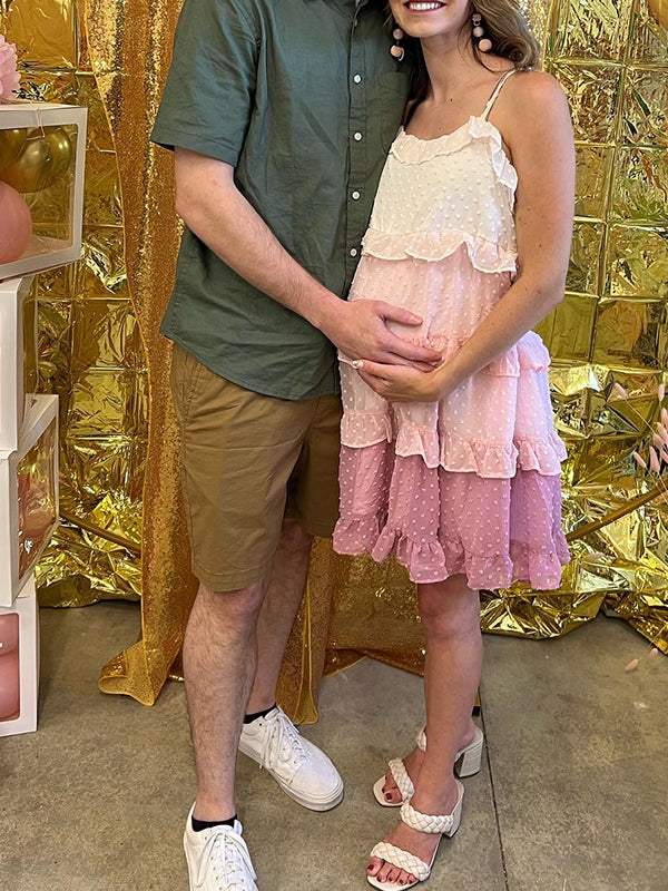 Momyknows Pink Gradient Color Polka Dot Ruffle Falbala A-line Cami Sweet Going Out Daily Maternity Photoshoot Baby Shower Mini Dress