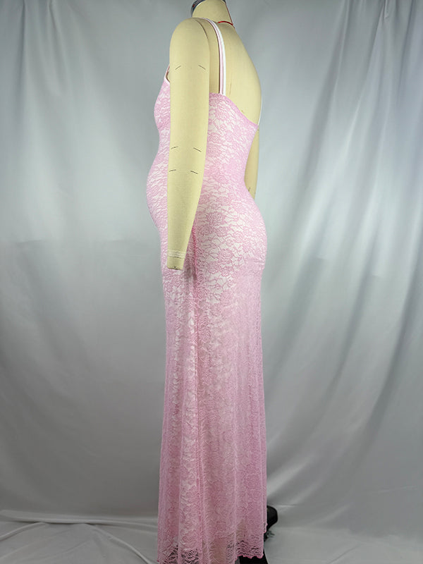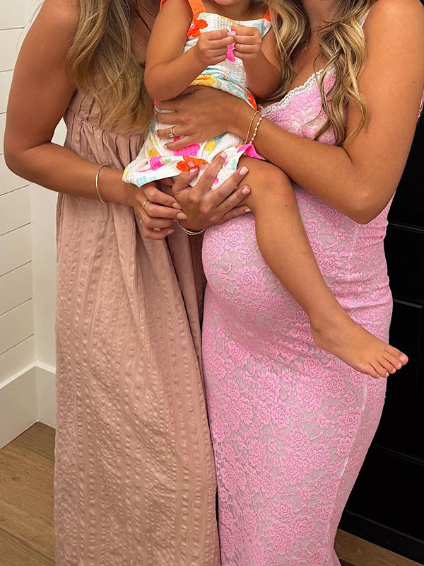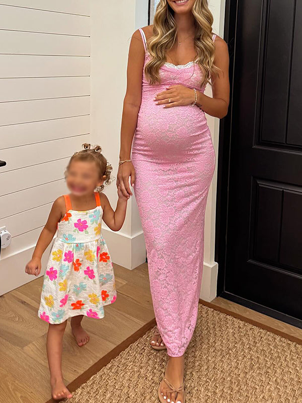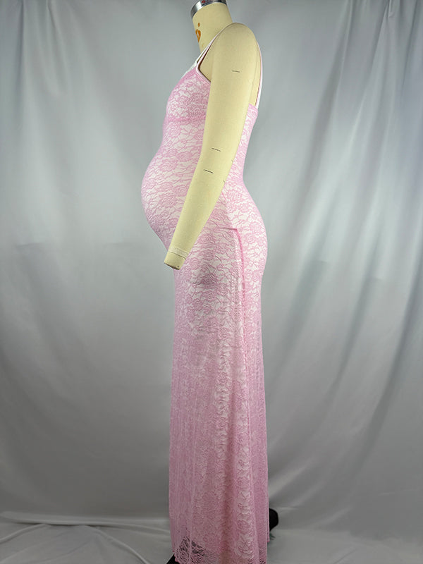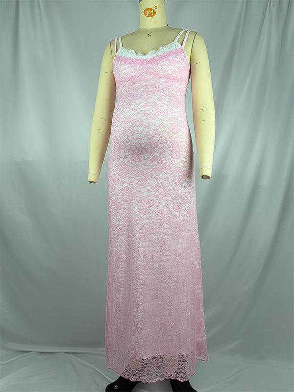 Momyknows Pink Hit Color Lace Cami Elegant Maternity Maxi Dress