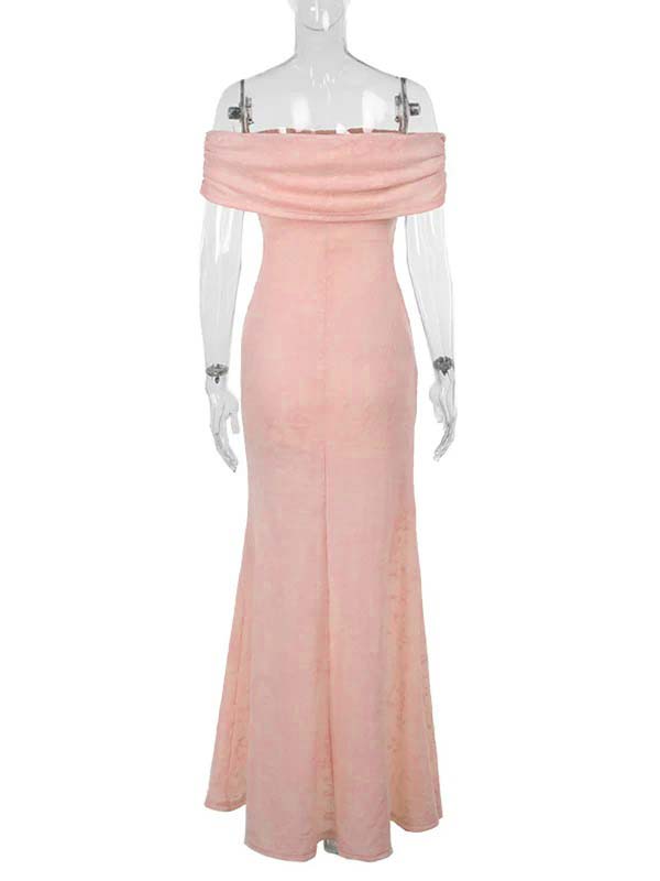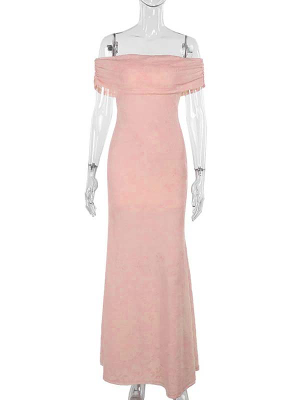 2025.10.11缺货下架Momyknows Pink Jacquard Textured Ruched Off Shoulder Mermaid Elegant Maternity Photoshoot Maxi Dress