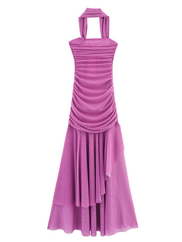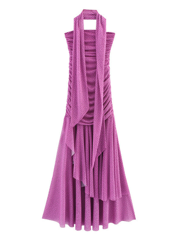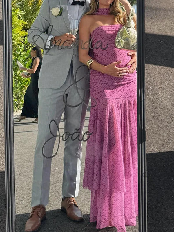 Momyknows Pink Polka Dot Ruched Ruffle Bandeau Scarf Maternity Maxi Dress