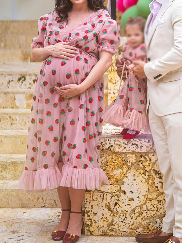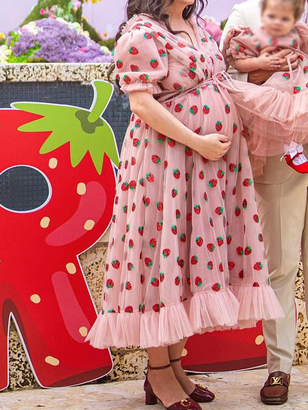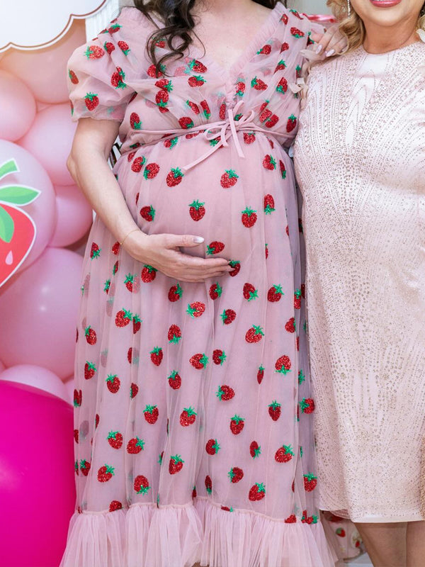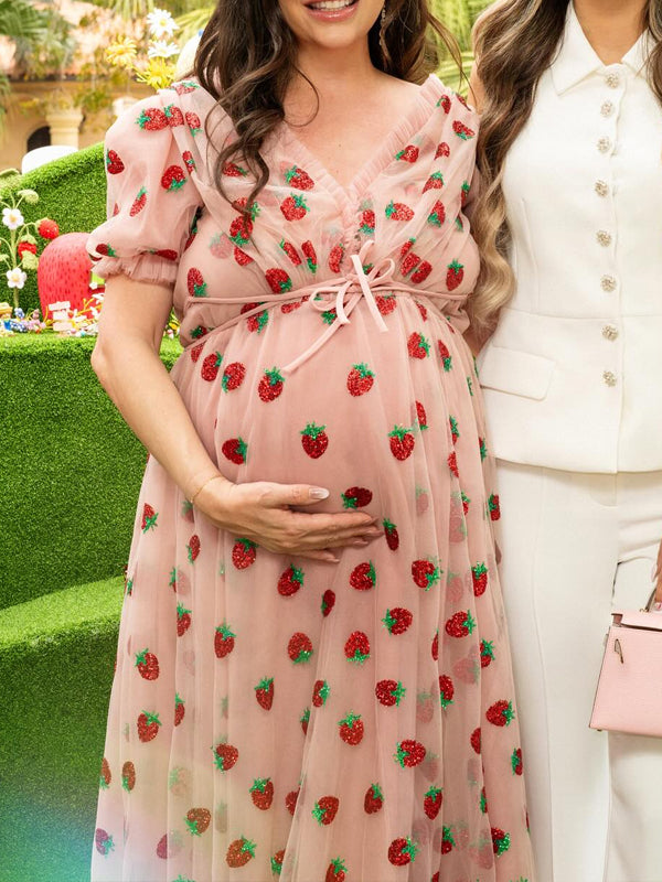 Momyknows Pink Sequin Grenadine Lace-up Maternity Baby Shower Maxi Dress