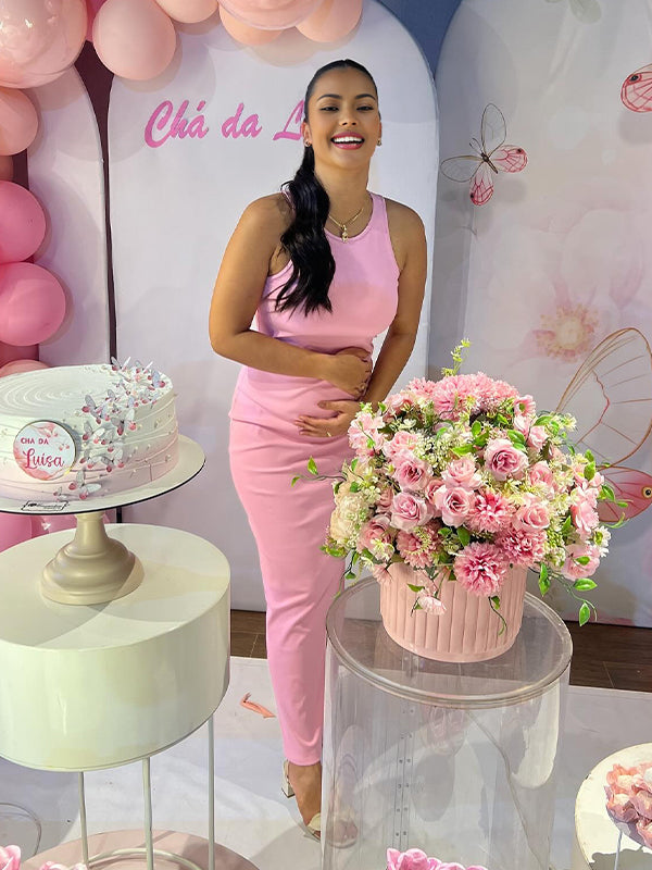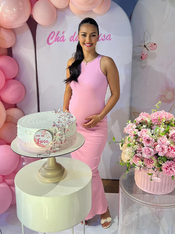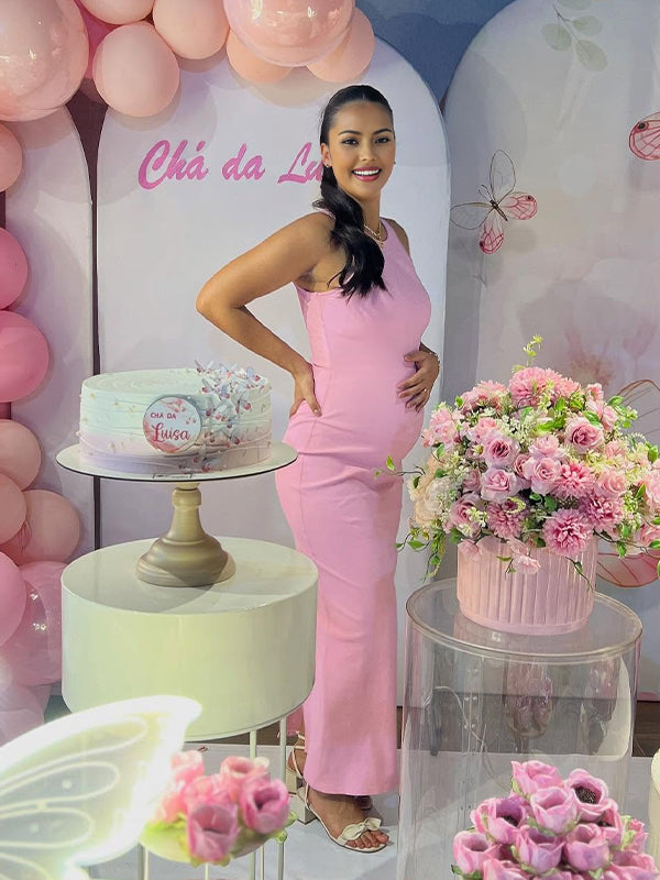 Momyknows Pink Solid Color Baby Girl Shower Maternity Maxi Dress