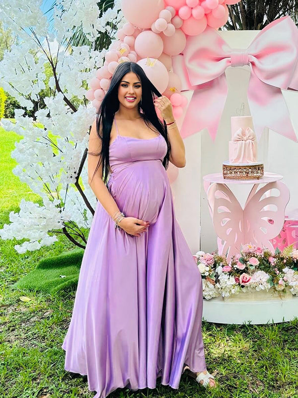 Momyknows Pink Spaghetti Strap Side Slit Maternity Baby Shower Maxi Dress