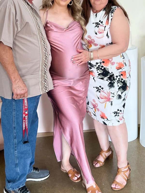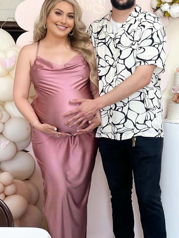 Momyknows Pink Spaghetti Strap Side Slit Maternity Baby Shower Maxi Dress