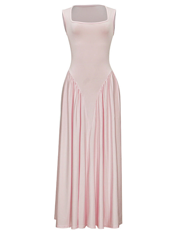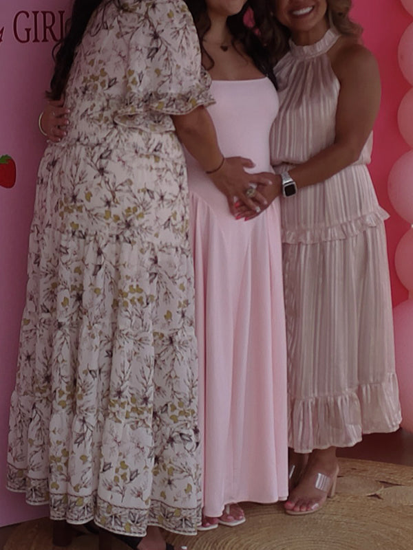 Momyknows Pink Tank Drop Waist Big Swing Elegant Maternity Maxi Dress