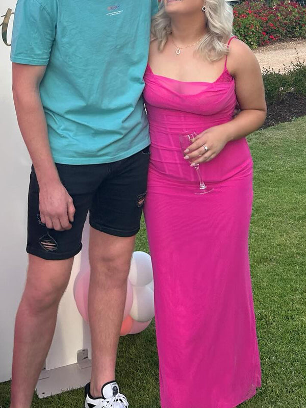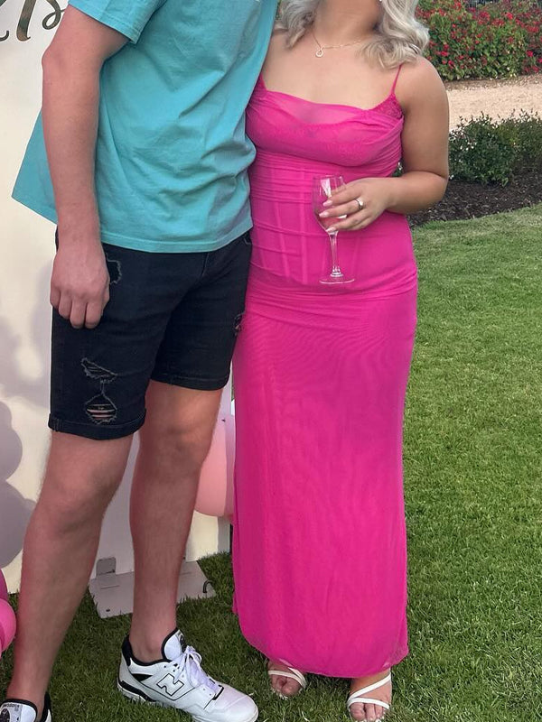 Momyknows Rose Carmine Spaghetti Strap Lace Maternity Baby Shower Maxi Dress