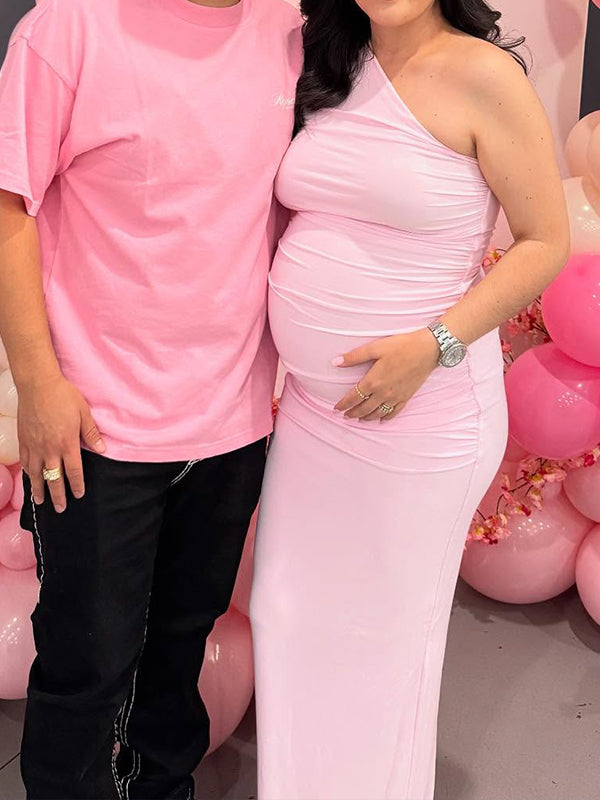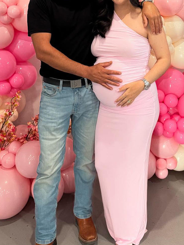 Momyknows Ruched One Shoulder Bodycon Elegant Maternity Maxi Dress