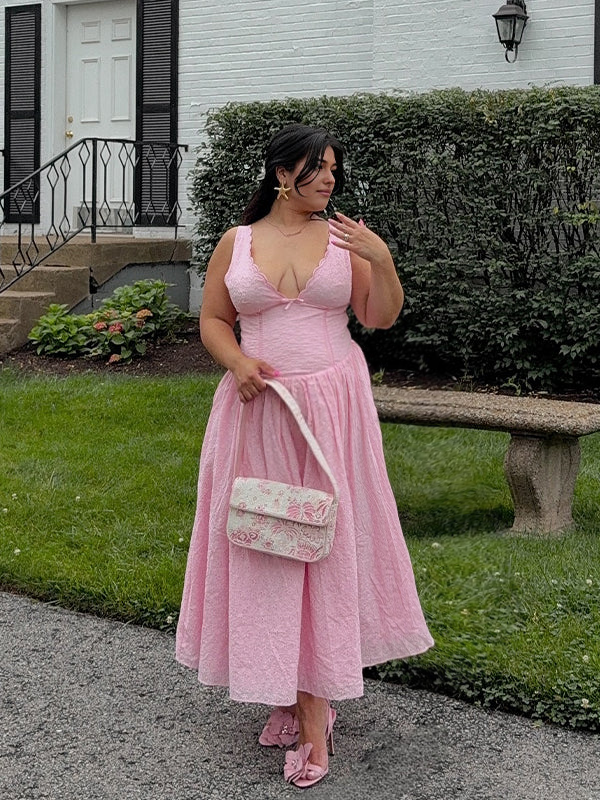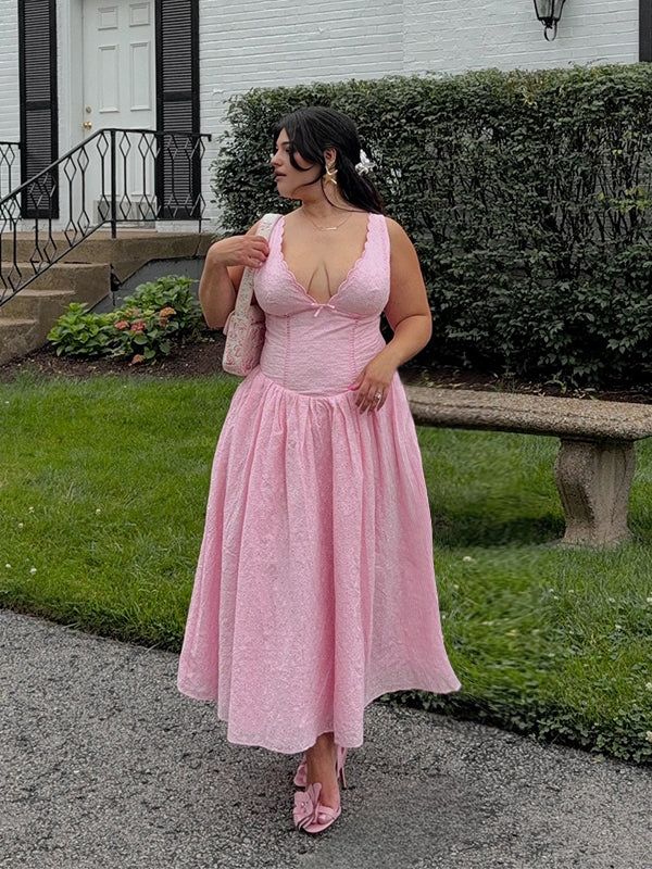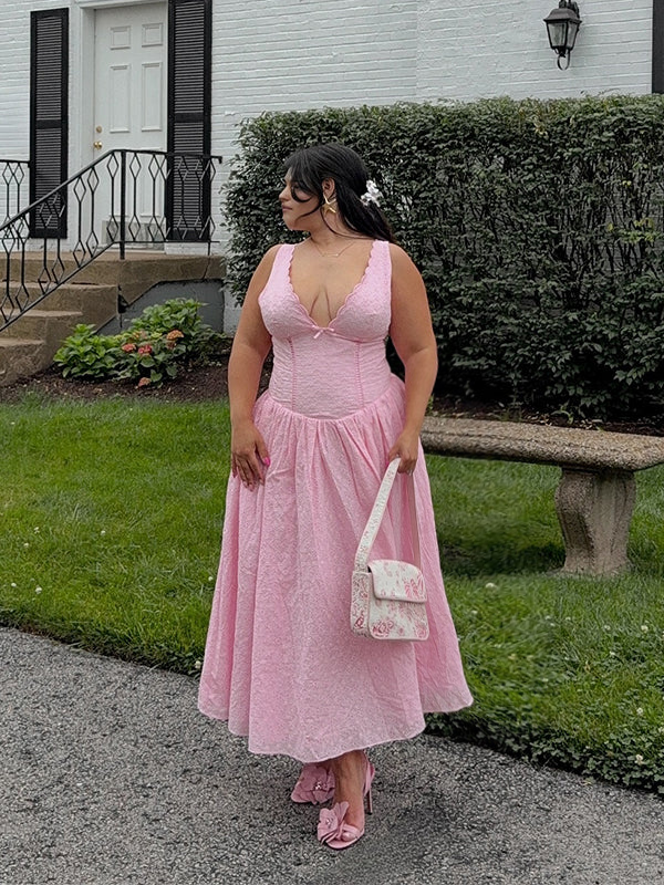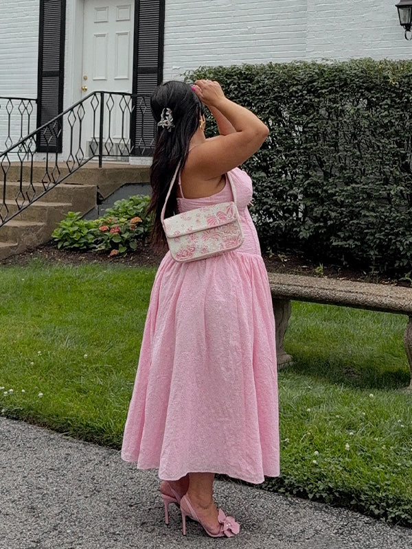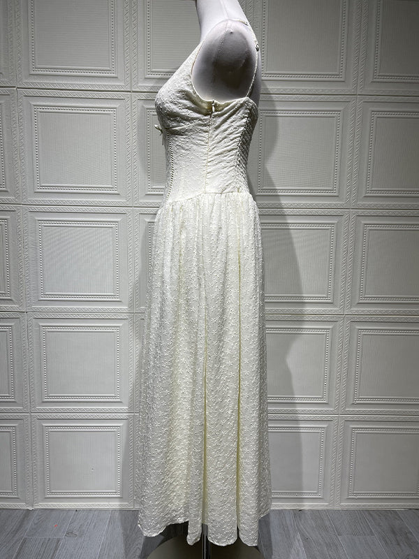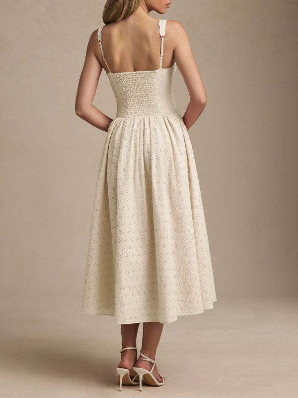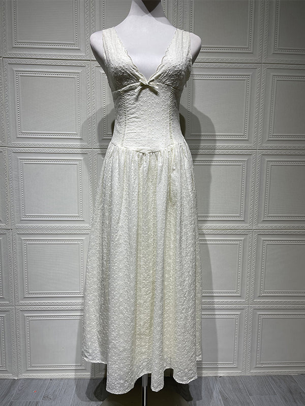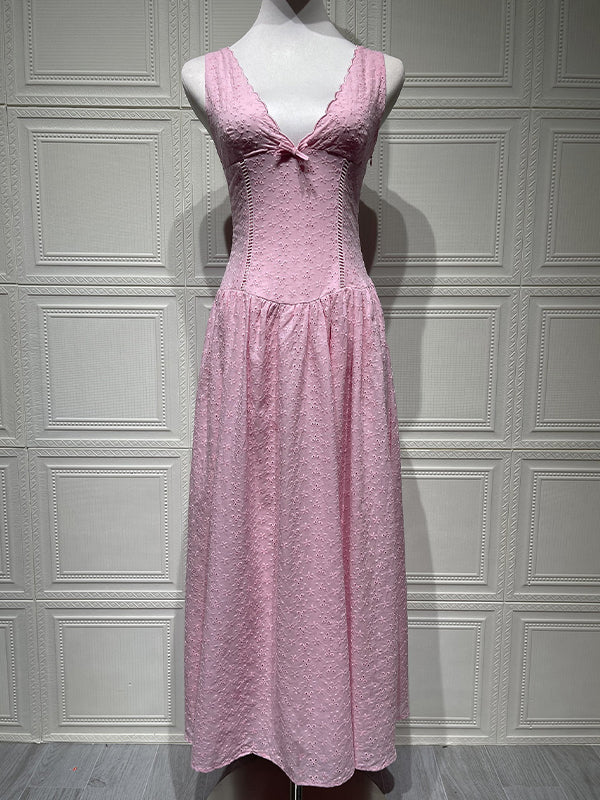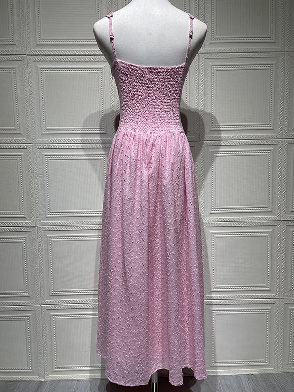 Momyknows Ruffle Smocked Bow Cut Openwork Flowers Maternity Maxi Dress