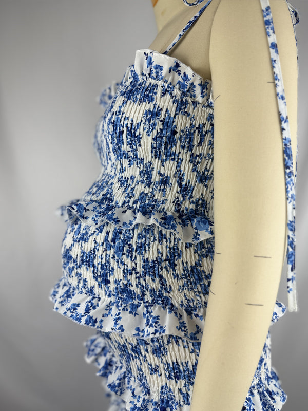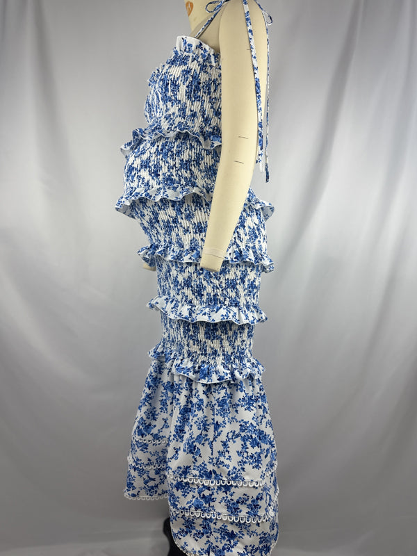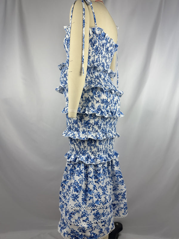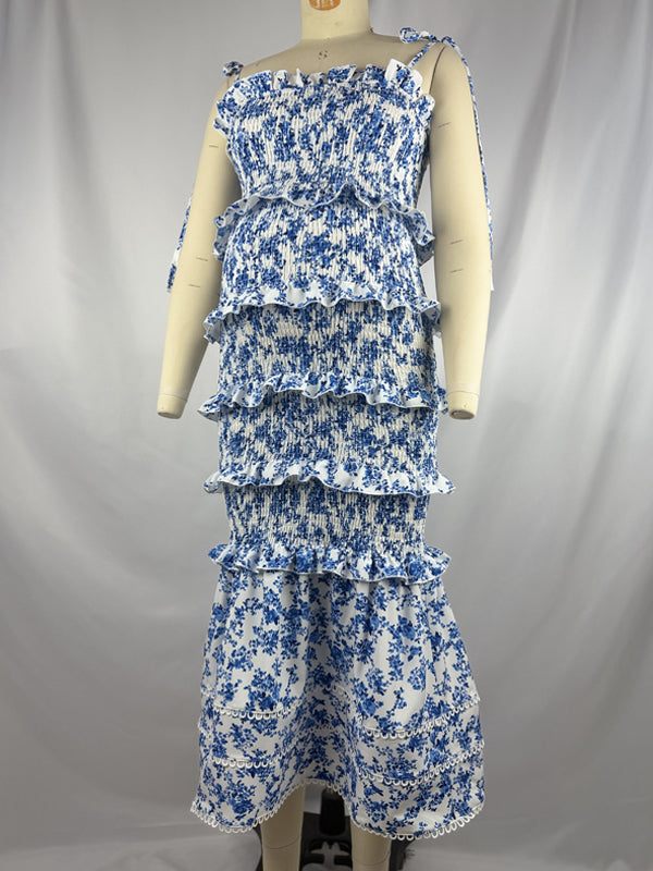 Momyknows Smoked Spaghetti Strap Stamp Duty Maternity Baby Shower Maxi Dress