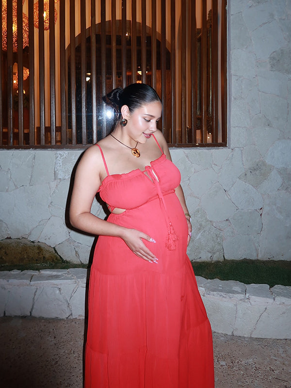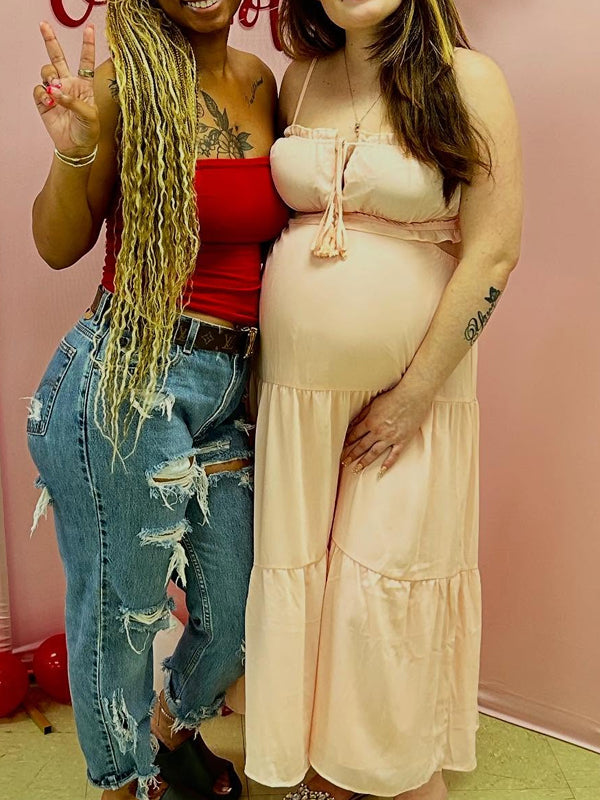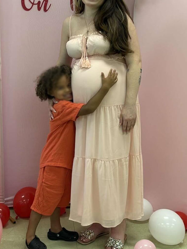 Momyknows Spaghetti Strap Spliced Lace-up Maternity Photoshoot Maxi Dress