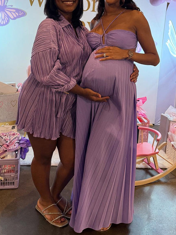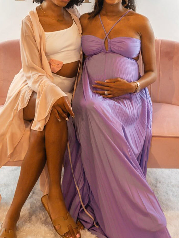 Momyknows Violet Pleated Cut Out Cami Backless Big Swing Maternity Maxi Dress