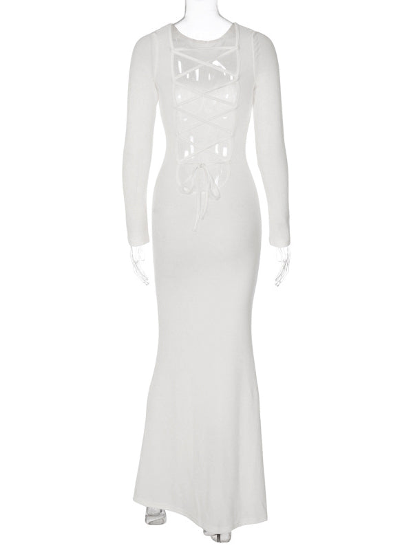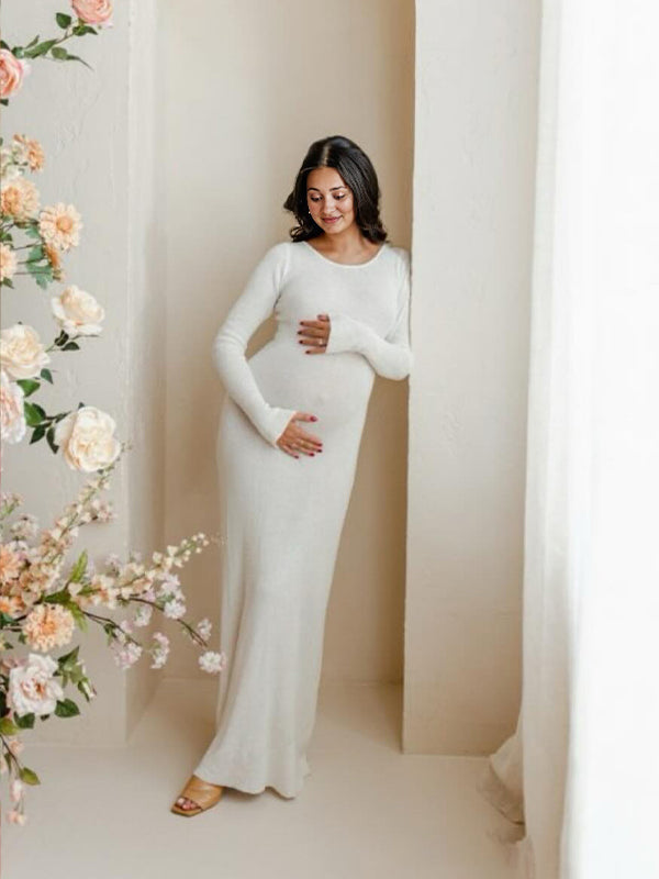 Momyknows White Backless Lace Up Bodycon Elegant Photoshoot Baby Shower Maternity Maxi Dress