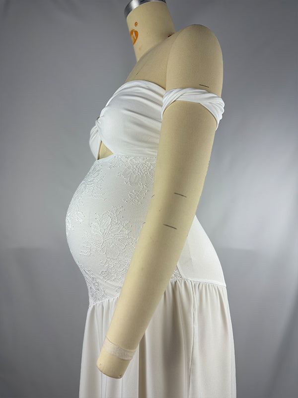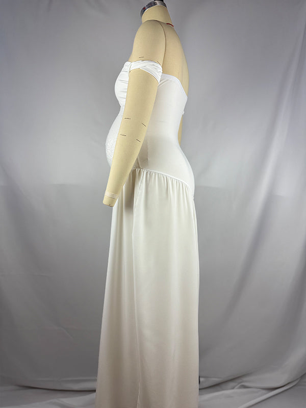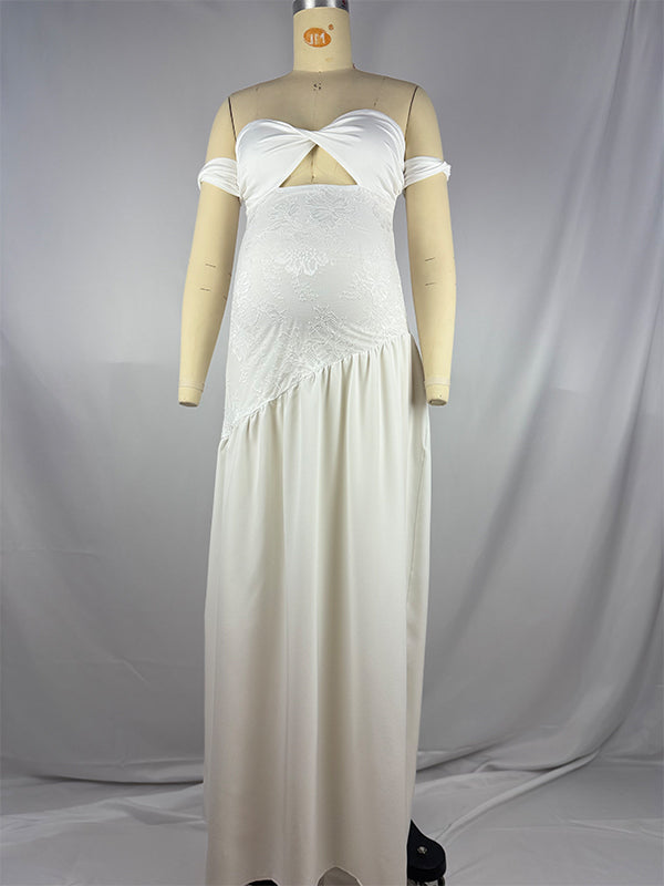 Momyknows White Off Shoulder Cut Out Big Swing Maternity Maxi Dress