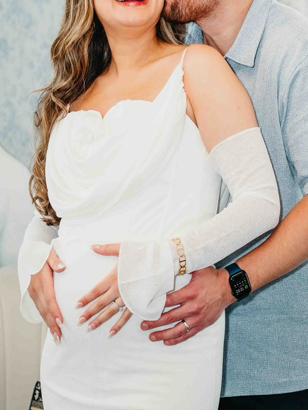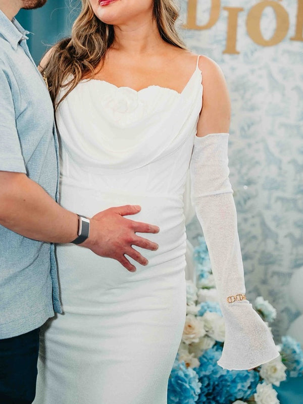 Momyknows White Off-Shoulder Trumpet 3D Flower Maternity Baby Shower Maxi Dress