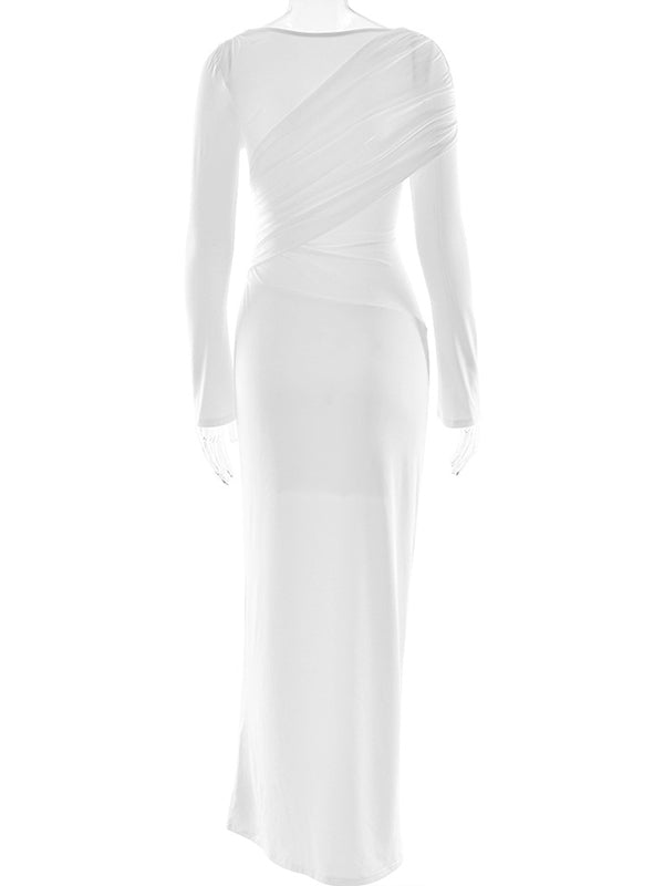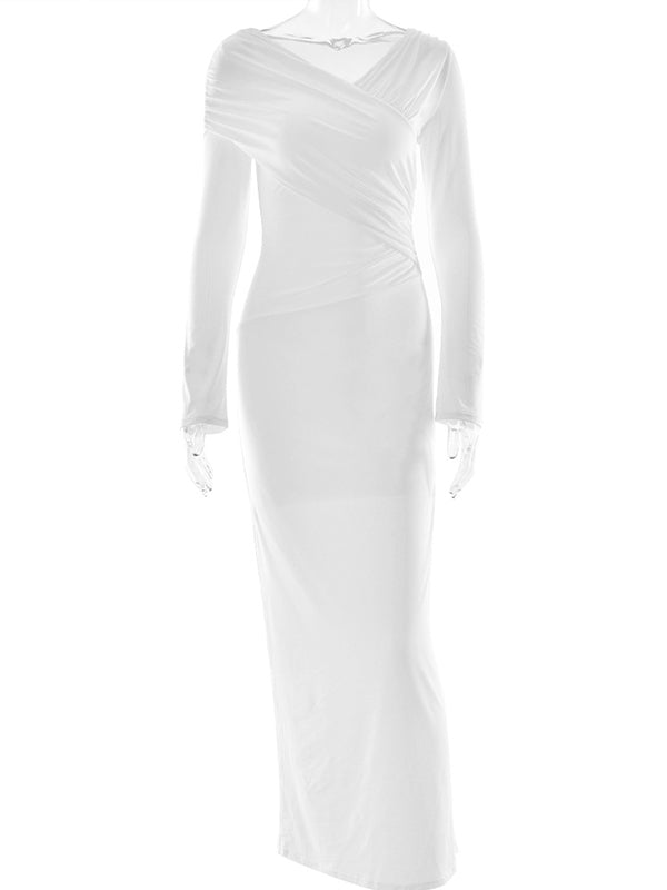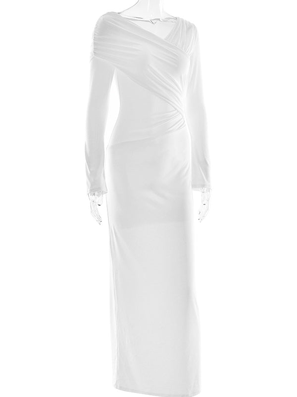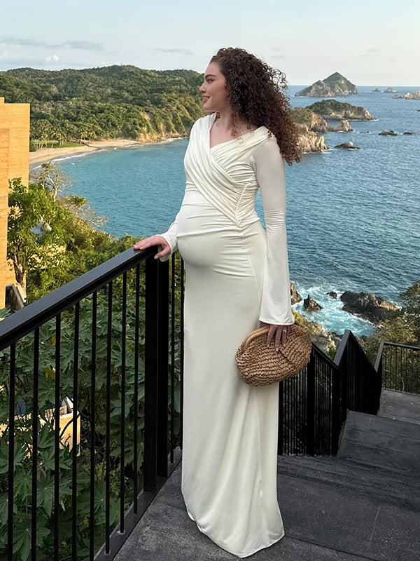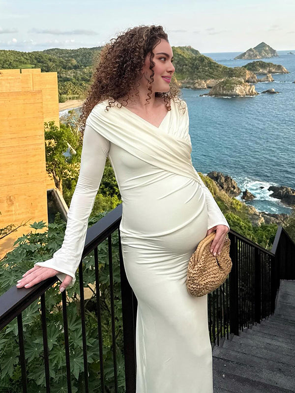Momyknows White Ruched Cross Chest Off Shoulder Elegant Maternity Maxi Dress