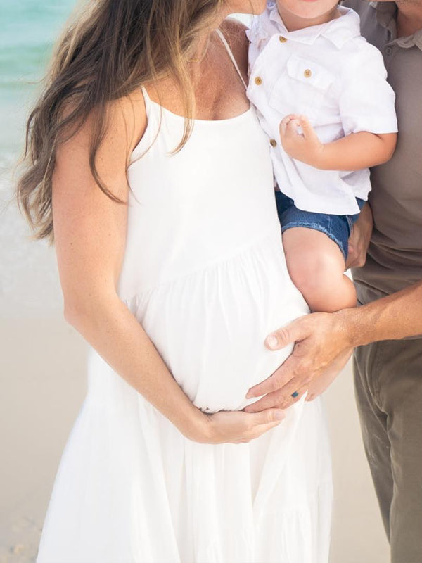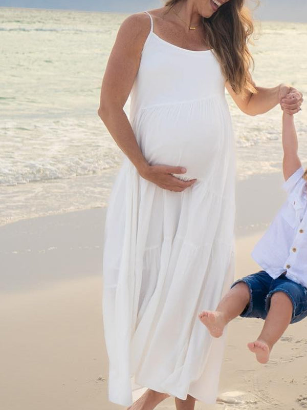 Momyknows White Spaghetti Strap Irregular Ruched Maternity Photoshoot Maxi Dress