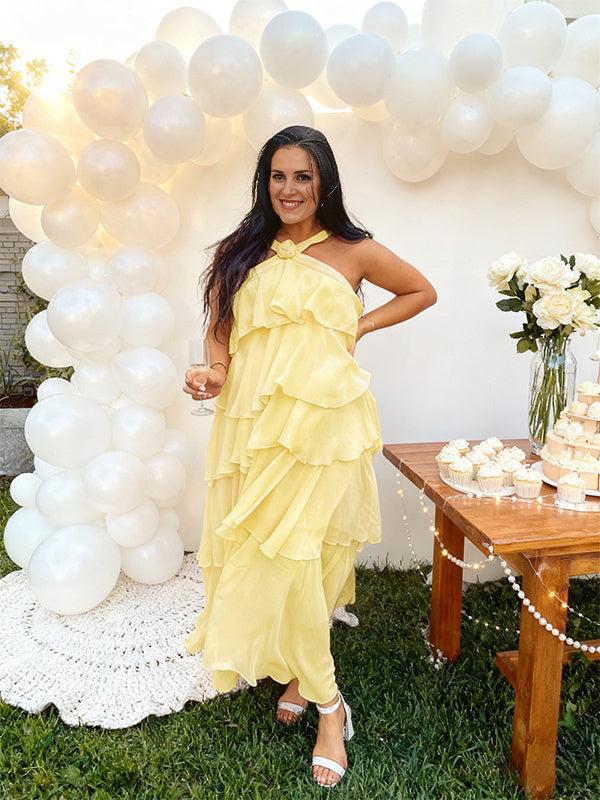 Momyknows Yellow 3D Flower Cake Ruffle Baby Shower Maternity Maxi Dress