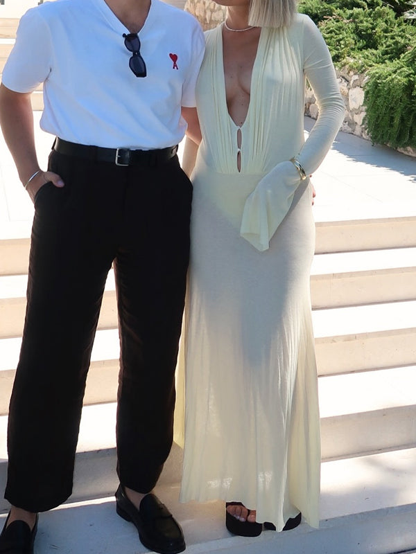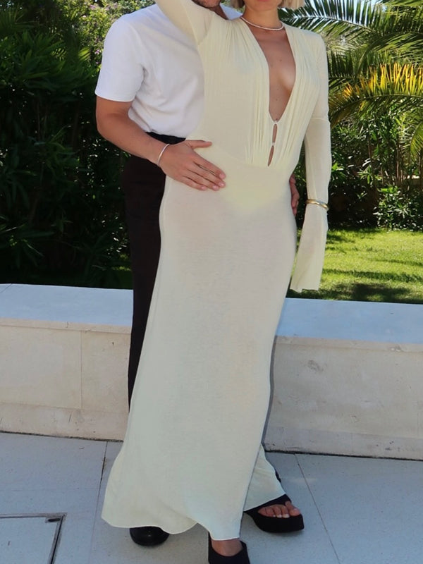 Momyknows Yellow Deep V Ruched Maternity Photoshoot Maxi Dress