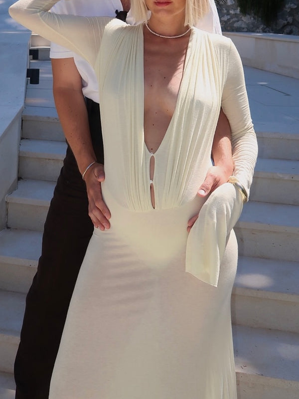 Decoration: deep v, ruched