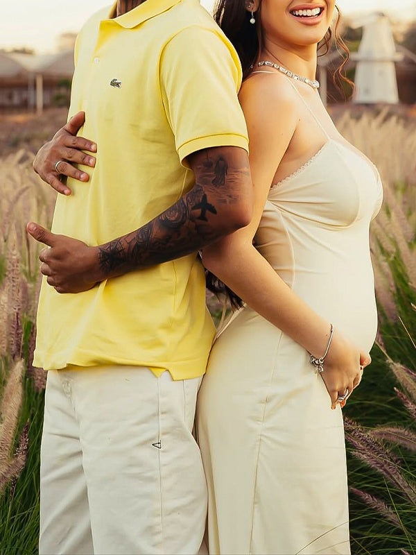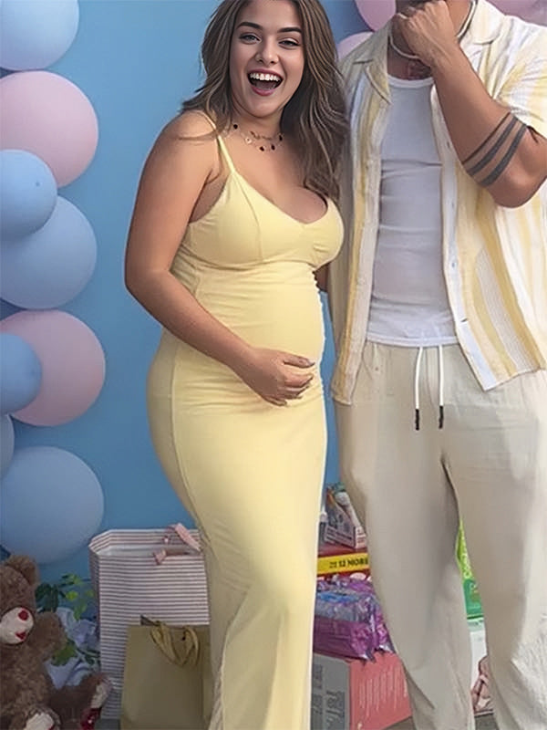Momyknows Yellow Lace Cami Baby Shower Maternity Maxi Dress