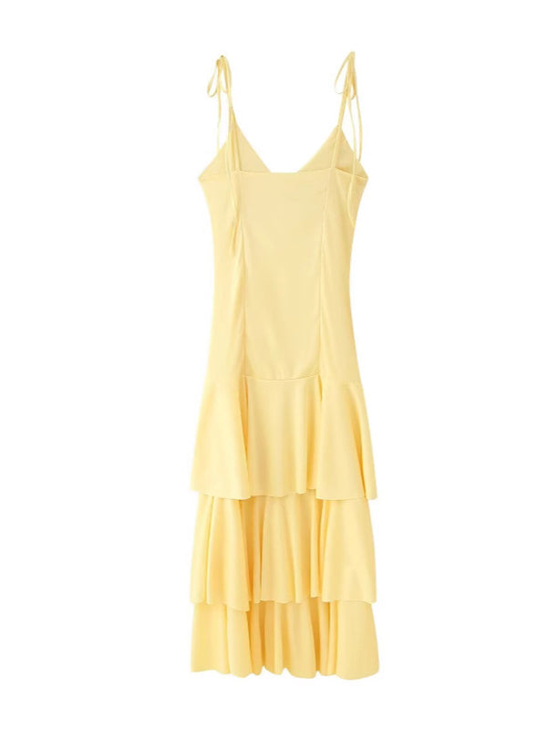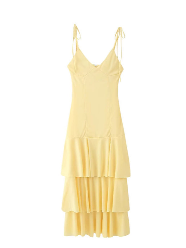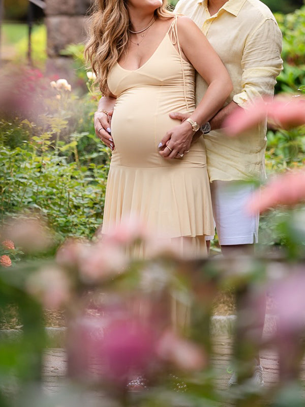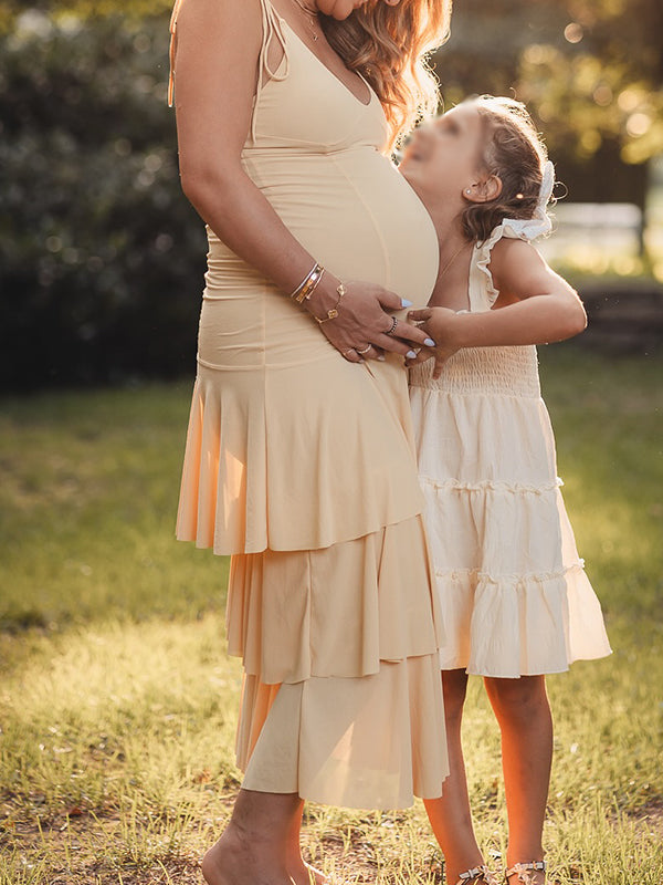 Momyknows Yellow Layered Ruffle Cami Elegant Maternity Maxi Dress