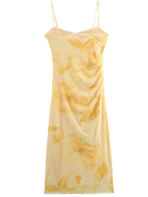 Momyknows Yellow Print Spaghetti Strap Maternity Baby Shower Maxi Dress