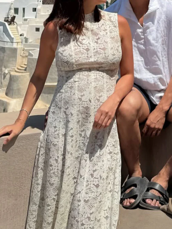 White Lace A-line Sleeveless ELegant Maternity Maxi Dress