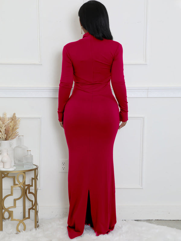 Momyknows Dark Red Round Neck Lace-up Maternity Baby Shower Maxi Dress