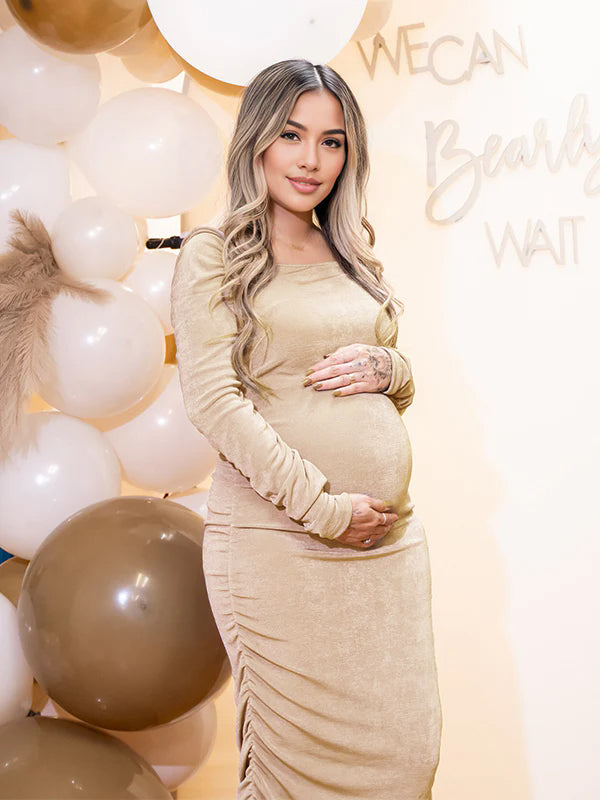 Momyknows Cut Out Ruched Photoshoot Maternity Maxi Dress