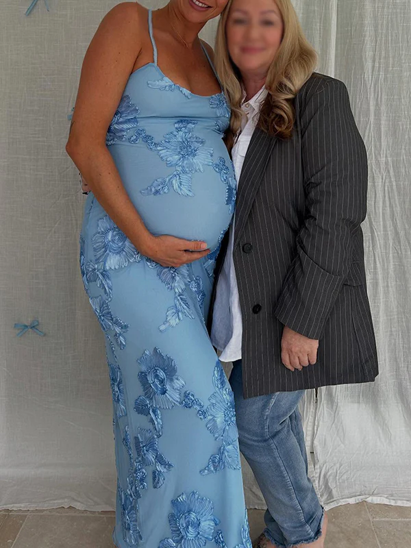 Momyknows Blue Floral Tie Shoulder Strap Cami Bodycon Maternity Maxi Dress
