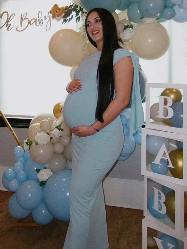 Momyknows Lace Patchwork Backless Elegant Maternity Baby Shower Maxi Dress